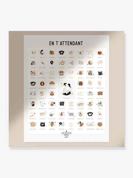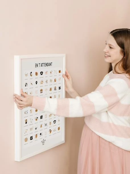 L’échographie du premier trimestre, le début du congé maternité, les premiers coups de pieds, les premières contractions… Tous les petits moments magiques de la grossesse sur une affiche.