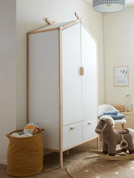 Une armoire originale, pratique pour ranger les habits avec ses différents rangements et propice aux rêves d’aventures des enfants grâce à sa forme cabane créative !