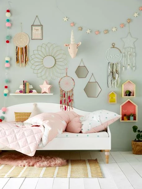 Selon la légende indienne, l’attrape-rêves emprisonne les mauvais rêves tandis que les bons glissent sur les plumes pour atteindre le dormeur. En plus d’être un bel objet déco, il aidera peut-être votre enfant à faire de jolis rêves… Qui sait !