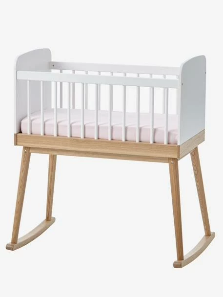 Votre bébé mérite les plus belles attentions dès son arrivée ! Et dans ce tendre berceau à barreaux, il réalisera les plus beaux des dodos ! Les bascules sous les pieds sont amovibles si vous préférez un berceau fixe ! Livré avec sommier.