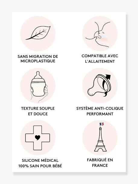 - Lot de 2 tétines supplémentaires en 3 débits au choix (lent, moyen, rapide) vendu séparément sur notre site