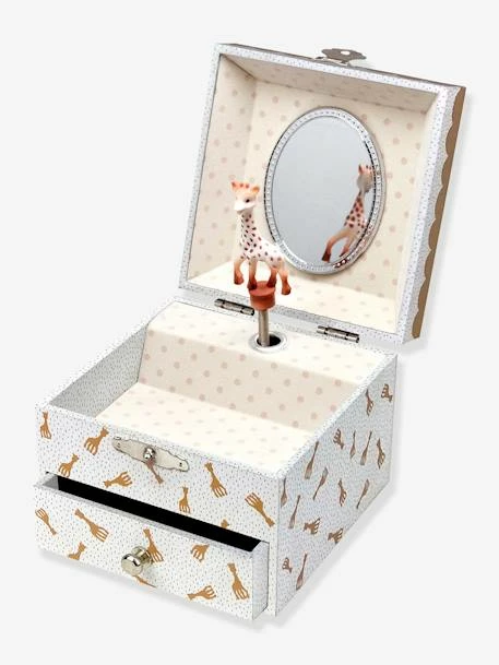 Cette jolie boîte à musique en forme de cube et disposant d’un tiroir émerveillera votre enfant qui y rangera ses trésors ! Actionnez la manivelle et la figurine Sophie la Girafe s’anime comme par magie au son de la musique ! Le petit plus ? Elle brille dans la nuit pour amuser et rassurer votre enfant.