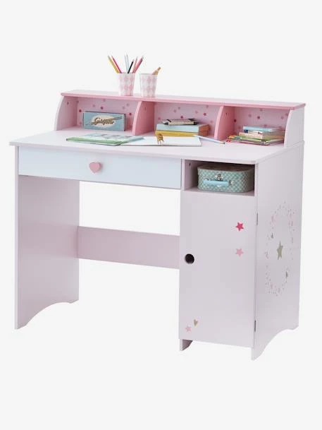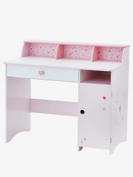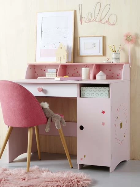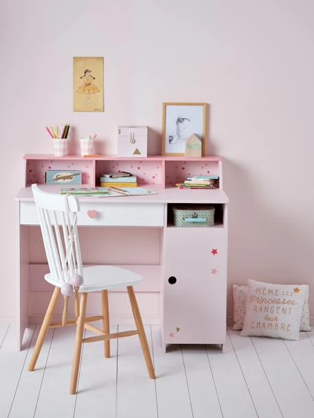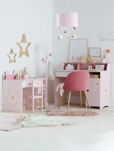 Il est temps de passer aux choses sérieuses avec ce bureau pratique aux allures féériques ! Doté d’un petit placard, un tiroir et plusieurs niches pour ranger toutes les affaires, ce joli bureau enfant décoré d’étoiles et de quelques petits coeurs rendra l’heure des devoirs beaucoup plus sympa ! Et pour que les petites soeurs ne soient pas jalouses, le bureau Féérie existe aussi en version maternelle !