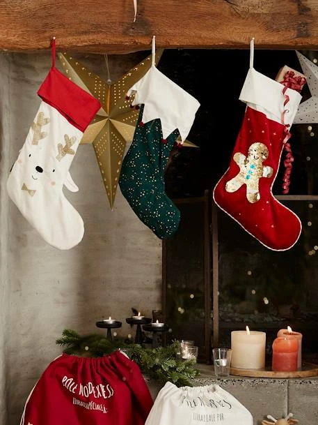 Noël, c’est une histoire de traditions, et la chaussette en fait partie ! Dans cette adorable chaussette de Noël accrochée au mur ou à la cheminée, le Père-Noël pourra déposer de petites surprises qui feront le bonheur des enfants ! Le petit biscuit en sequins réversibles vient apporter un petit supplément de magie !