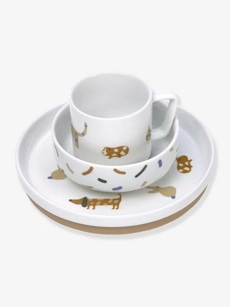 Pour donner à votre enfant l’envie de tout manger et rendre ses repas plus amusants, voici un set de vaisselle raffiné, au joli décor ludique et une excellente idée de cadeau ! Composé d’une assiette, d’une tasse et d’un bol, ce coffret-repas est réalisé en porcelaine, un matériau idéal qui garde mieux les plats au chaud, n’a ni goût ni odeur, est compatible micro-ondes et lave-vaisselle tout en résistant aux rayures.