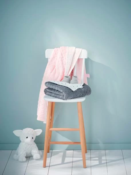 Couverture bébé bi-face en microfibre minky et molleton 100% coton.