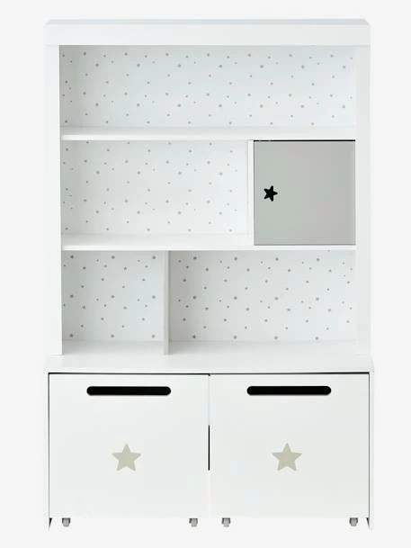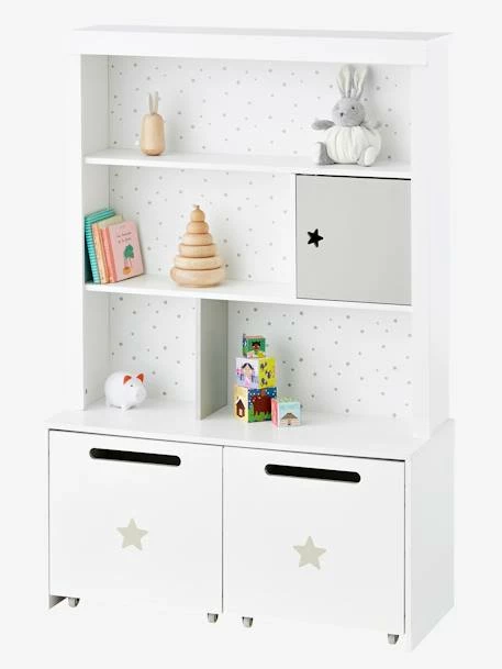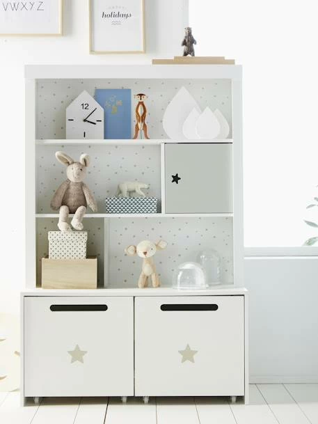 Cette ravissante étagère haute accueillera les objets préférés de votre enfant. Bien pensée, elle est dotée de 2 grands tiroirs-coffres à la base, bien pratiques pour ranger peluches et jouets.