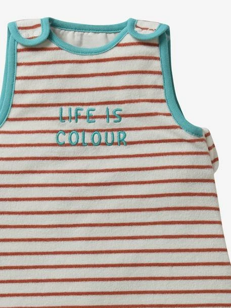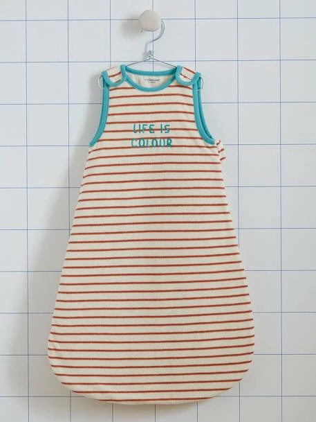 Les beaux jours sont là, on ose la couleur ! Matière éponge et rayure esprit marin, voici tout ce dont on rêve pour les nuits d’été de bébé ! Une gigoteuse légère et tendance avec ses larges bords-côtes contrastés et un petit message brodé pour encore plus de personnalité ! Confectionnée sans ouatinage, elle couvre bébé tout en douceur lorsque les nuits sont chaudes.