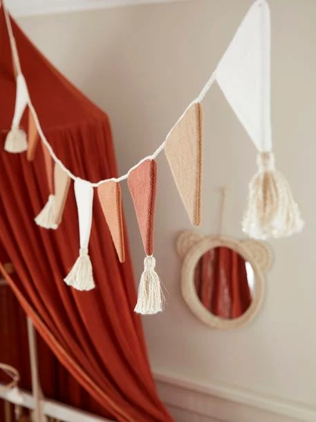 AccrochĂ©e dans la chambre, cette belle guirlande amĂšne beaucoup de douceur avec ses fanions en tricot. Ses couleurs dans l’air du temps en font un Ă©lĂ©ment tendance qui fera son effet dans l’espace des kids.