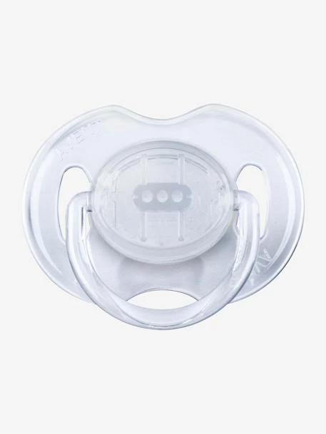 – Tétines extra souples reproduisant la forme du sein, élaborées pour faciliter l’alternance entre l’allaitement au sein et les premiers biberons. Avec alvéoles pour assurer douceur et souplesse tout en évitant que la tétine ne s’écrase et valve anti-coliques conçue pour que l’air rentre dans le biberon et non dans le ventre de bébé - 1 sucette orthodontique spécial nouveau-né