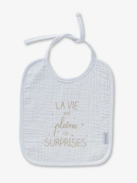 Les 3 bavoirs à liens en gaze de coton. Doublure 80% coton, 20% polyester.