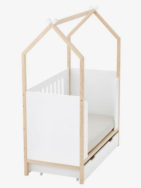 Que l’aventure commence ! Dans ce lit bébé en forme de cabane, bébé passera ses premières nuits en toute sécurité. Lorsqu’il grandit, il suffit d’ôter la barrière latérale pour lui offrir alors un joli petit lit banquette ! Livré avec sommier.