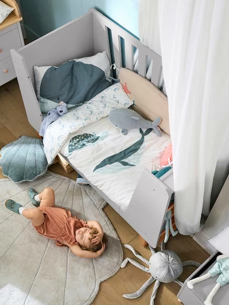 Lit bébé transformable LIGNE FJORD en panneaux de fibres de bois, sommier et pieds en pin massif.