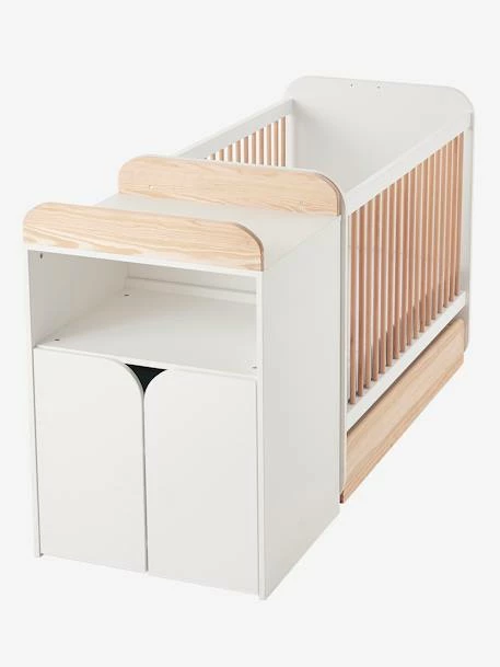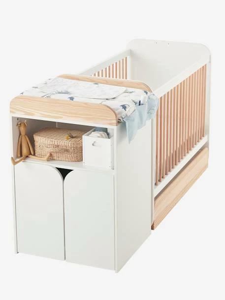 Lit Combiné évolutif Avec Rangements Et Table à Langer LIGNE ECLIPSE Blanc / Bois – Vertbaudet
