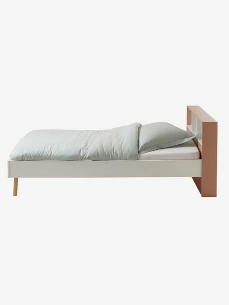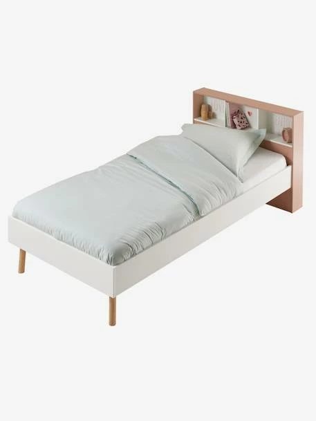 Lit enfant avec rangements Léa en panneaux de fibres de bois et pieds en hévéa. Peinture finition à l’eau.