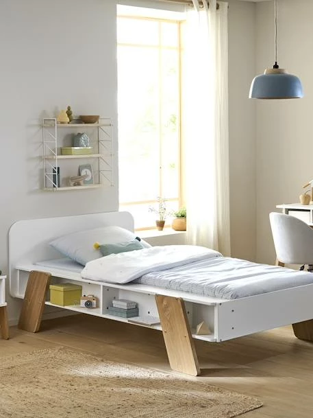 Fonctionnel, avec tablettes de rangements sur les côtés, ce lit au design original n’est pas sans rappeler l’esprit des jeux de construction ! Livré avec sommier.