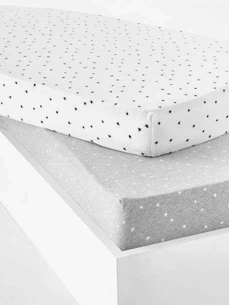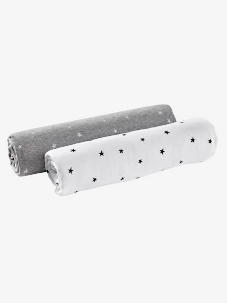 Lot De 2 Draps-housses Bébé En Jersey Extensible Imprimé étoiles Gris Chiné/blanc – Vertbaudet