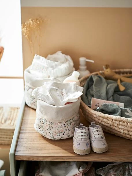 Lot de 2 paniers réversibles FLEURETTES en coton, rembourrage polyester.