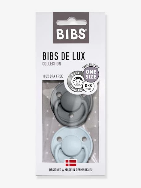 Lot De 2 Sucettes-tétines BIBS De Lux En Silicone Gris Fer + Bleu Layette – Bibs