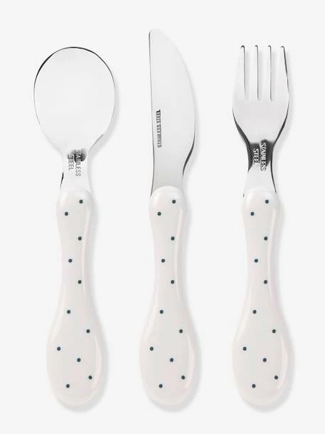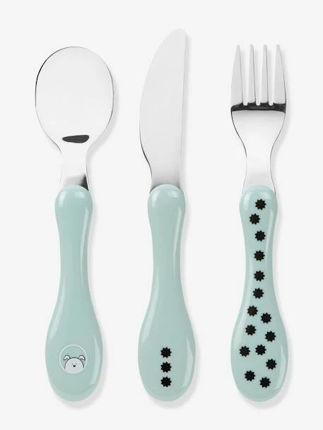 Pour accompagner l’enfant dans son apprentissage de l’autonomie et lui donner l’envie de manger tout seul comme un grand, voici un set de couverts complet (cuillère, fourchette et couteau) au joli décor ludique et une excellente idée de cadeau ! Réalisés en inox de haute qualité et résistants à la torsion, ces couverts ergonomiques sont conçus pour une prise en main aisée, pour les droitiers comme pour les gauchers, et parfaitement adaptés à la bouche des tout-petits.