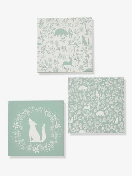 Accrochées au mur ou posées sur un meuble, ces 3 adorables toiles décorées de notre histoire “Dans les bois”, décorent la chambre avec tendresse !