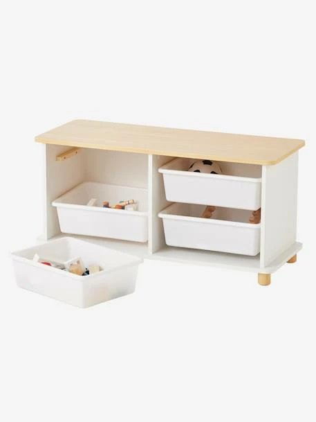 Meuble De Rangement + 4 Bacs LIGNE PTILOU Blanc/bois – Vertbaudet