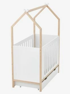 Lit Bébé Avec Barrière Amovible + Rangement Bibliothèque LIGNE PIROUETTE Blanc – Vertbaudet