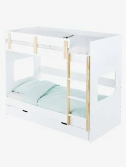 Lit Mezzanine Mi-hauteur Enfant LIGNE EVEREST Blanc/bois – Vertbaudet