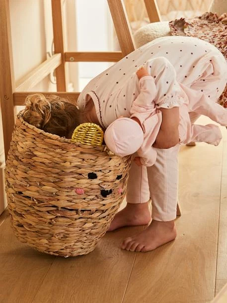 Un joli panier qui s’inscrit dans la tendance naturelle et qui plaira aux enfants avec sa petite bouille et ses oreilles dorées !