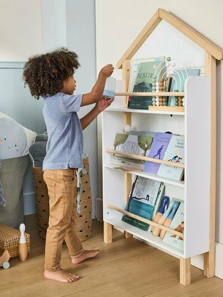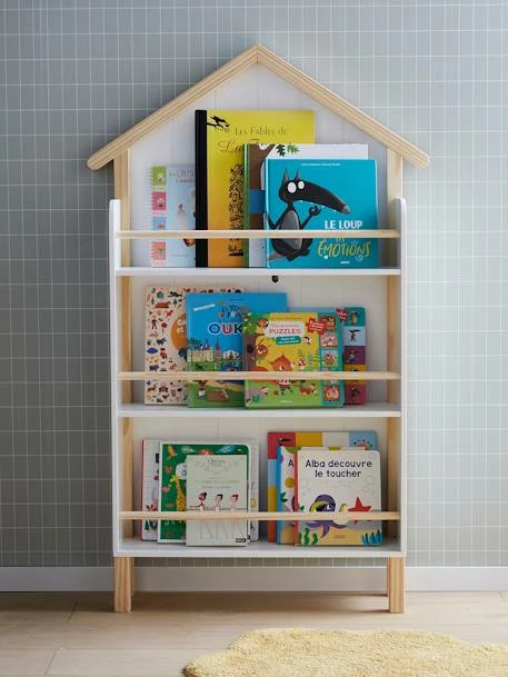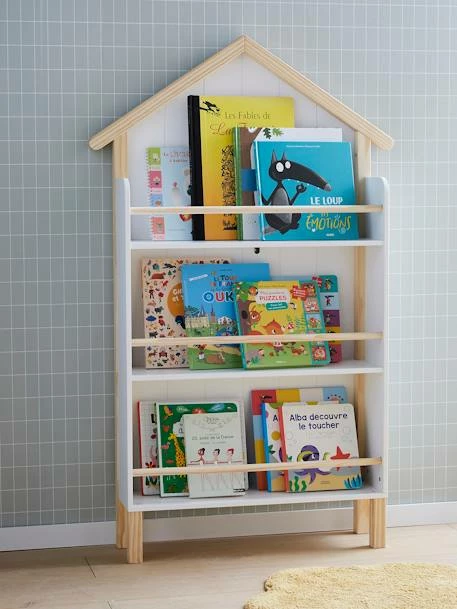 Présentoir à livres LIGNE BORD DE MER en pin et panneaux de fibres de bois.