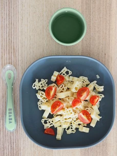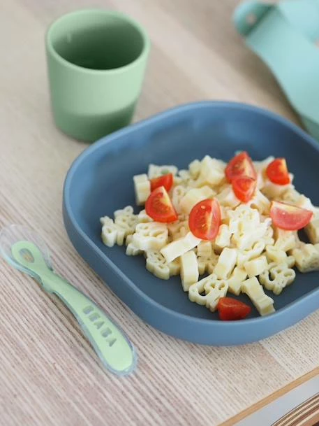 Le changement c’est maintenant ! A l’heure de la diversification alimentaire, bébé doit s’adapter et adopter de nouveaux ustensiles ! Bye bye biberon, le set vaisselle 4 pièces en silicone de Béaba se compose d’une assiette, d’un bol, d’un verre et d’une cuillère, soit le nécessaire pour permettre aux petits de déguster purées et autres aliments solides. De la diversification (vers 4 mois) à l’apprentissage pour manger seul (12/36 mois), l’enfant apprendra petit à petit à se servir du set de vaisselle enfant Béaba.