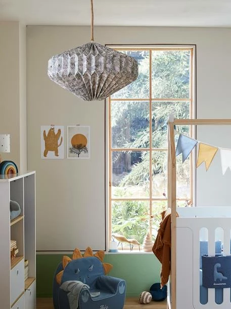 Une jolie suspension aux imprimés végétaux qui nous transporte tout droit vers Hanoï ! Son pliage style origami apporte une touche créative très sympa à la déco. Associez-la à une douille (vendue séparément sur ce site) pour créer un joli luminaire.