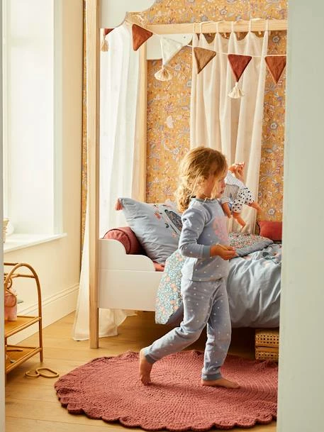 Posé dans la chambre, ce tapis offre un style rétro à la déco ! Réalisé en crochet et en pur coton, les enfants vont apprécier s’y poser pour jouer, rêver….