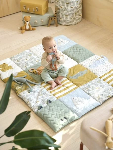 Les petits vont apprécier d’être installés sur ce beau tapis de sol patchwork ! Des motifs narratifs, des matières et des détails travaillés pour éveiller la vue, le toucher… bébé peut découvrir son petit monde bien installé !