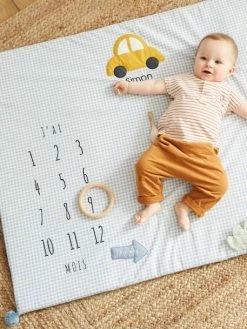 Photographiez la croissance de bébé mois après mois avec ce joli tapis de sol ! Le petit + : il se personnalise ! Un anneau pour entourer l’âge et des applications pour émerveiller bébé, en route pour de beaux souvenirs !
