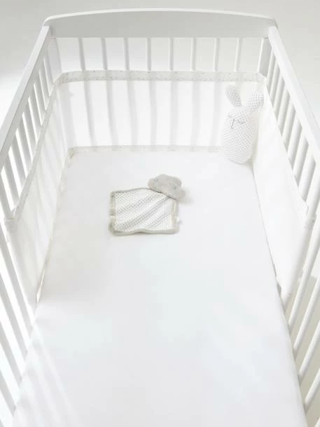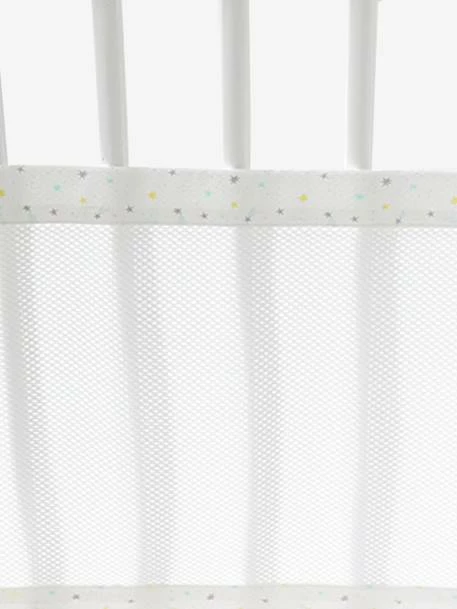 Réalisé avec une maille filet favorisant la circulation de l’air et un contour imprimé d’une pluie d’étoiles filantes, ce tour de lit respirant assurera à votre enfant des nuits paisibles et sécurisées.