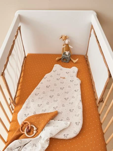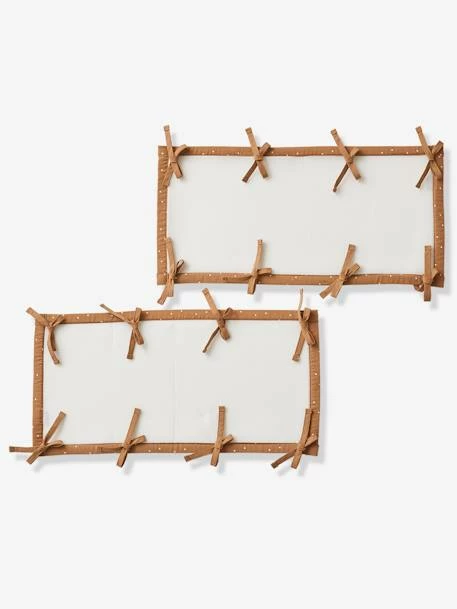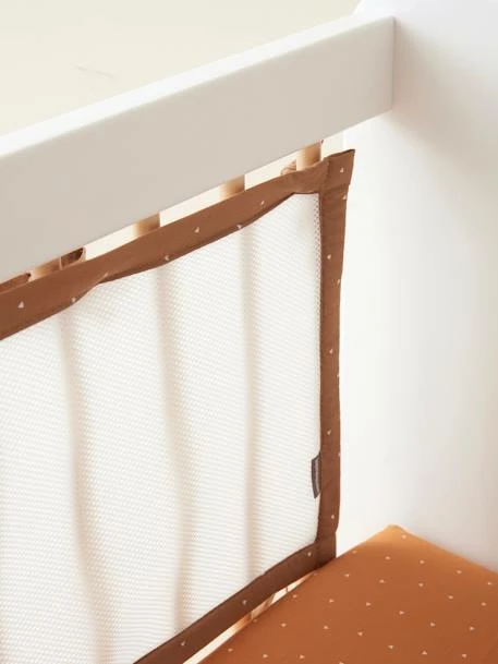 Réalisé avec une maille filet favorisant la circulation de l’air et un contour imprimé de triangles, ce tour de lit respirant composé de 2 parties à fixer sur les barreaux du lit bébé assurera à votre enfant des nuits paisibles et sécurisées.